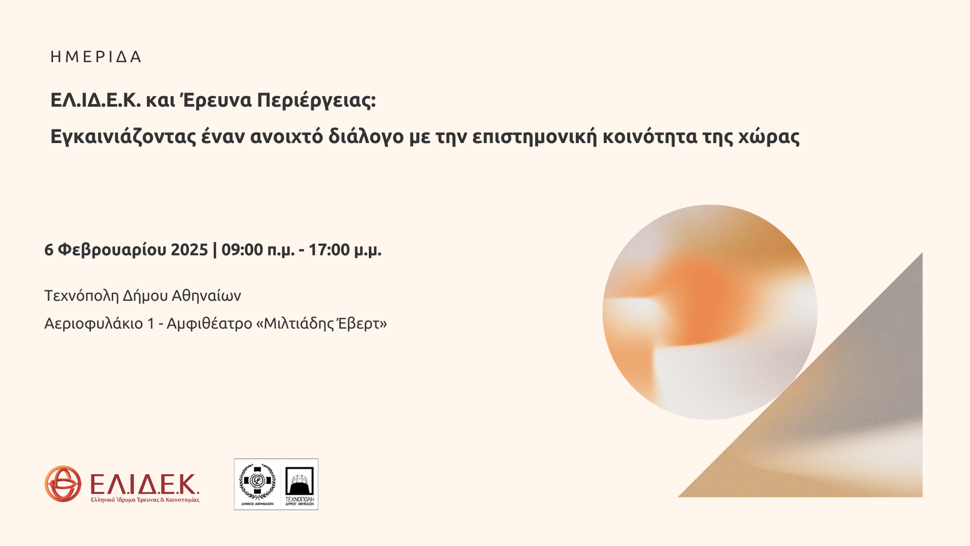 ΔΕΛΤΙΟ ΤΥΠΟΥ: Ημερίδα «ΕΛ.ΙΔ.Ε.Κ. και Έρευνα Περιέργειας: Εγκαινιάζοντας έναν ανοιχτό διάλογο με την επιστημονική κοινότητα της χώρας»