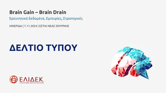 Ημερίδα ΕΛ.ΙΔ.Ε.Κ. με τίτλο «Brain Gain – Brain Drain: Ερευνητικά δεδομένα, Εμπειρίες, Στρατηγικές», 7.11.2024, 10:00-16:30