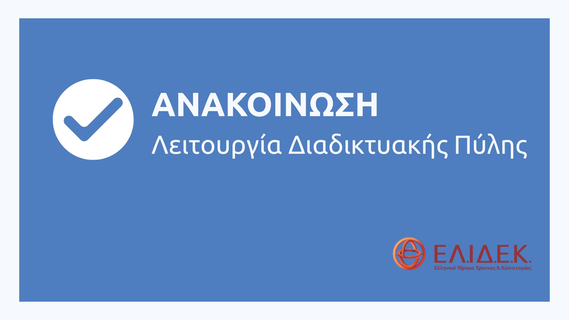 Ανακοίνωση: Επαναφορά λειτουργίας της Διαδικτυακής Πύλης ΕΛ.ΙΔ.Ε.Κ.