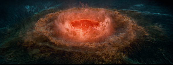 The following video shows an artistic representation of a black hole at the center of the galaxy, which absorbs matter from its surroundings, releasing energy and light.