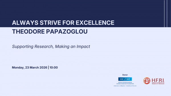 The Hellenic Foundation for Research and Innovation (H.F.R.I.) is organising an event on Monday, 23 March, 2026, at 10:00 a.m., at its premises, entitled: “Always Strive for Excellence – Theodore Papazoglou: Supporting Research, Making an Impact”.